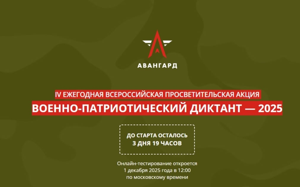01 декабря 2025 года в 10:00 в Центральном академическом театре Российской Армии в городе Москве пройдет IV Ежегодная всероссийская просветительская акция «Военно-патриотический диктант – 2025».