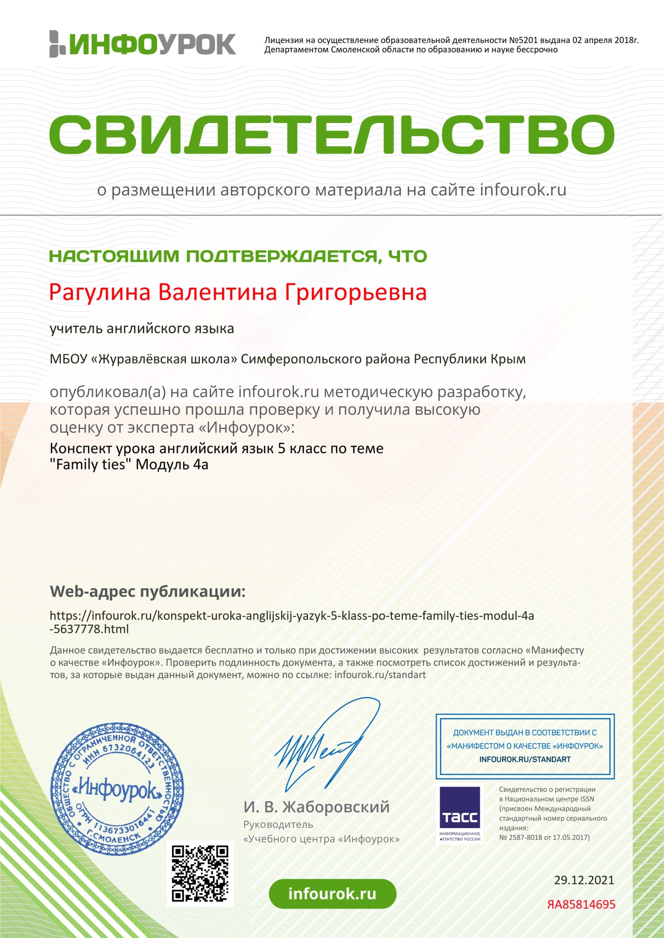 Конспект урока английского языка 5 класс по теме Family ties Модуль 4 а.pdf